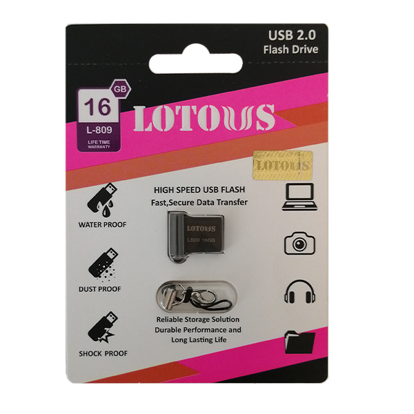 فلش مموری لوتوس مدل L809 با ظرفیت 16 گیگاباییت و اتصال USB2.0 یک انتخاب مناسب برای ذخیره و انتقال اطلاعات شما می باشد. این مموری ضد شوک بوده و در برابر آب و غبار مقاوم می باشد.