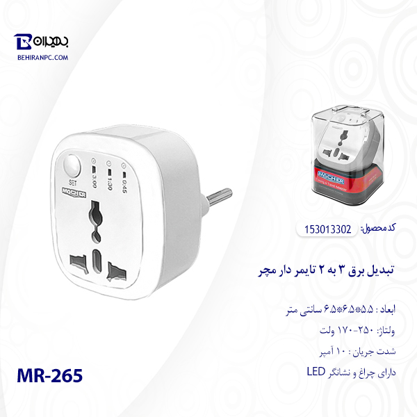 تبدیل برق 3 به 2 تایمردار مچر مدل MR-265 عدد