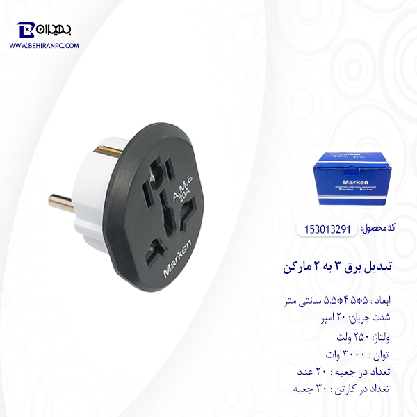 تبدیل برق 3 به 2 شاخه مارکن 20A مدل KT168