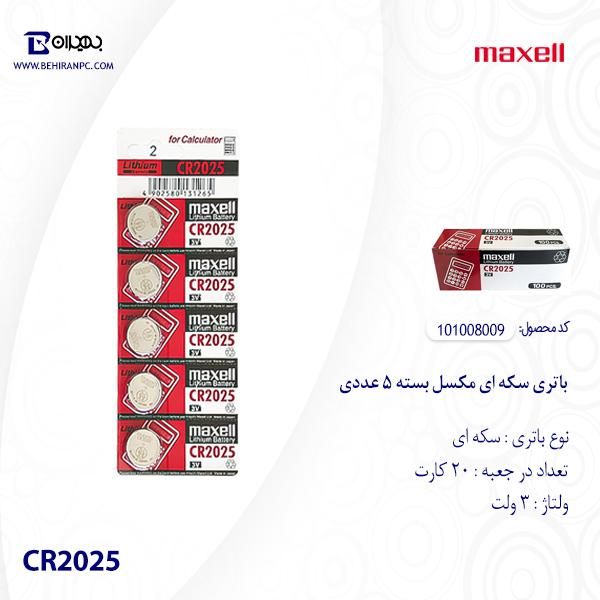 باتری سکه ای مکسل CR2025 بسته پنج عددی