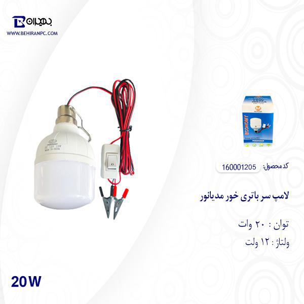 لامپ سر باتری خور 20 وات Mdianoor mdianoor-20w-led-bulb-with-alligator-clip