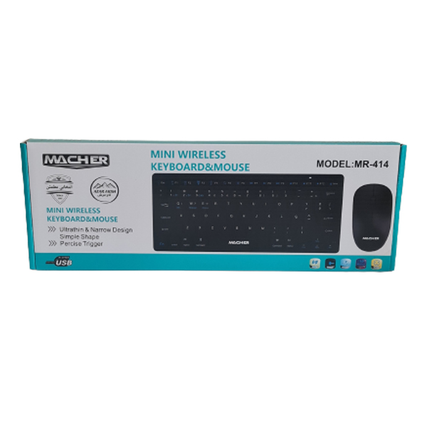 کیبورد و ماوس مچر مدل MR-414 بدون سیم می باشد و بصورت وایرلس (وای فای) به دستگاه های ما وصل می شوند و پورت USB را پشتیبانی می کند.