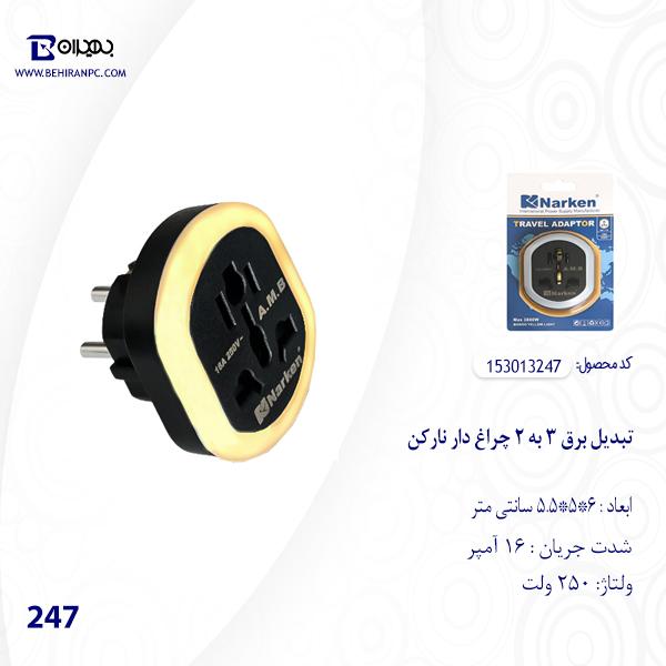 تبدیل برق 3 به 2 شاخه چراغ دار نارکن (اصل)