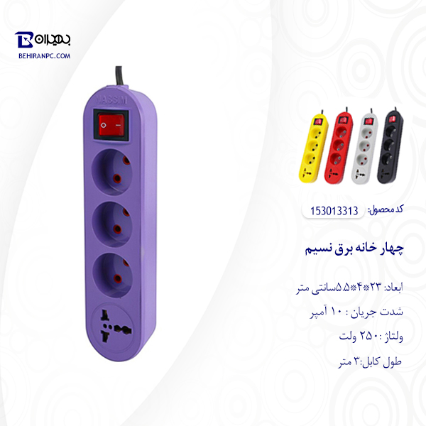 چهار خانه برق نسیم طول کابل 3 متر عدد