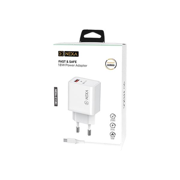 شارژر دیواری Nexa 18W مدل C118C همراه با کابل تایپ سی