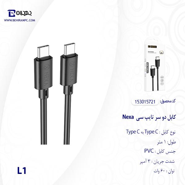 کابل دو سر تایپ سی Nexa 60W مدل L1 طول 1 متر nexa-l1-60w-type-c-cable