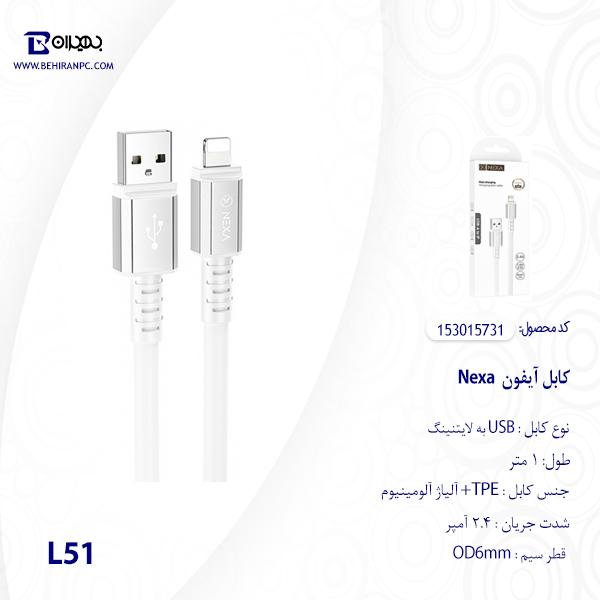 کابل تبدیل USB به لایتنینگ Nexa مدل L51 طول 1 متر nexa-l51-usb-to-ip-cable