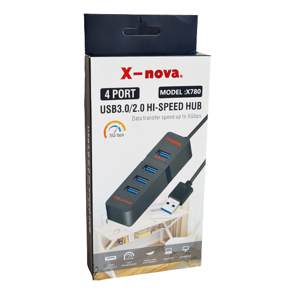 هاب 4 پورت USB3.0/USB2.0 نووا مدل X780 nova-usb3-usb2-hub-4port-x780