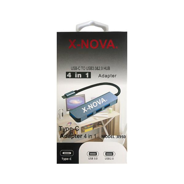 هاب تایپ سی 4 پورت USB3.0 نووا مدل X950 عدد