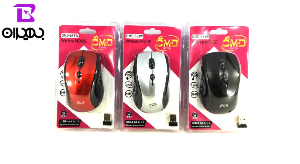 ماوس بی سیم او ام دی مدل 653W بدون سیم و توسط دانگل USB به کامپیوتر شما متصل شده و امکان کار با هر دو دست را دارد. دقت این ماوس 1600dpi و حسگر آن اپتیکال است. این ماوس دارای 4 عدد کلید می باشد.
