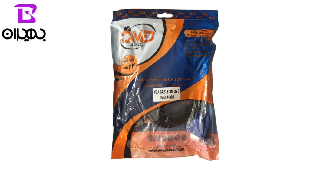 کابل VGA او ام دی مدل K-903 وظیفه انتقال تصویر از دستگاه های دارای پورت VGA به مانیتور یا نمایشگرهای دارای پورت VGA را برعهده دارند. به عنوان مثال شما با استفاده از این کابل می توانید کیس کامپیوتر خود را به مانیتور متصل کنید. طول این کابل 3 متر است.