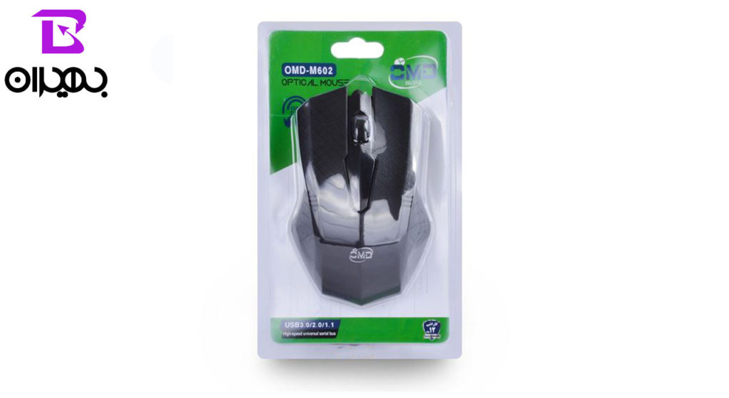 ماوس او ام دی مدل M602 یک ماوس سیمی است که از طریق پورت USB با کابل 1.3 متر به لپ تاپ یا کامپیوتر متصل شده و امکان کار با هر دو دست را دارد. این ماوس دارای حسگر اپتیکال، دقت 1000dpi و 3 عدد کلید است.
