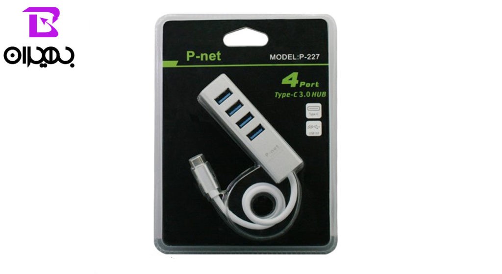 هاب USB3 Type-C پی-نت 4 پورت مدل P-227 توسط پورت Type-C به دستگاه های مختلف متصل شده و 4 پورت USB به شما می دهد. این پورت های USB همگی USB3.0 بوده و به همین دلیل انتقال دیتای بالایی را توسط آن تجربه می کنید. برخی تبلت ها و لپ تاپ ها از این پورت پشتیبانی می کنند.