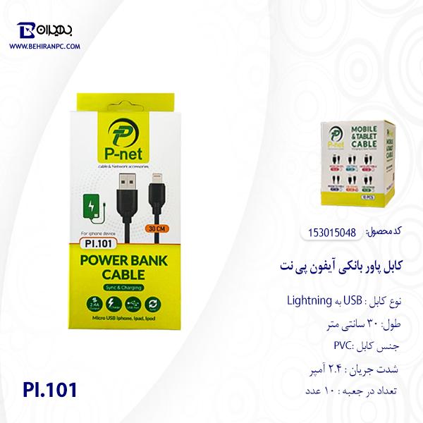 کابل USB به لایتنینگ پاور بانکی پی نت مدل PI.101 طول 30cm عدد