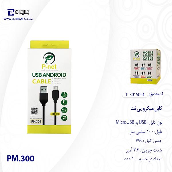 کابل USB به MicroUSB پی نت مدل PM.300 طول 1 متر p-net-pm-300-usb-to-microusb-cable