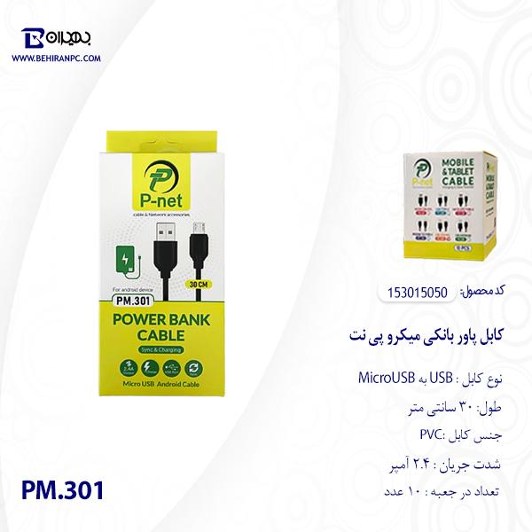 کابل USB به MicroUSB پاوربانکی پی نت مدل PM.301 طول 30cm عدد