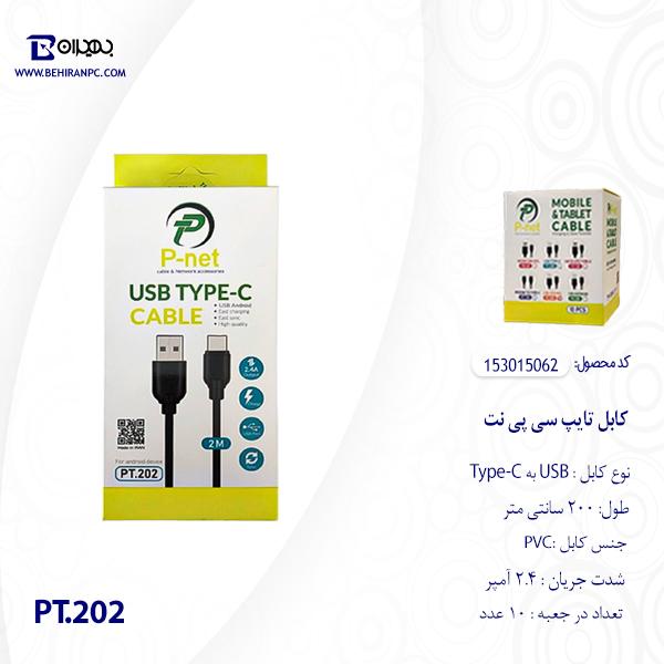 کابل USB به Type-C پی نت مدل PT.202 طول 2 متر p-net-pt-202-usb-to-type-c-cable