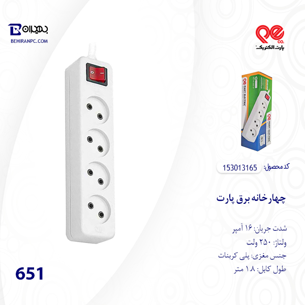 چهار خانه برق پارت مدل 651 کابل 1.8 متر