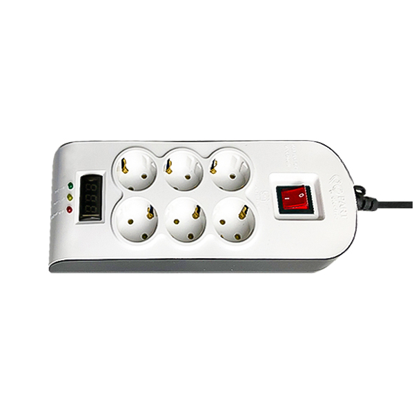 سه چراغ LED روی این محافظ برق تعبیه شده که وضعیت محافظ را نشان می دهد. LED قرمز نشان دهنده نوسان برق ورودی، LED زرد نشان دهنده ی انتظار برای ورود جریان ثابت و LED سبز نشان دهنده روشن شدن محافظ است. علاوه بر چراغ های LED، دارای نمایشگر دیجیتالی است که ولتاژ را نمایش می دهد.