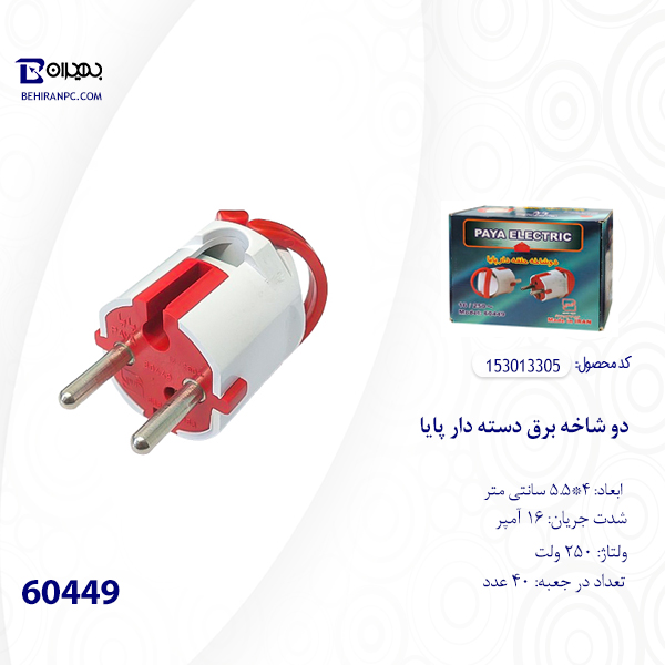 دو شاخه برق دسته دار پایا مدل 60449 عدد