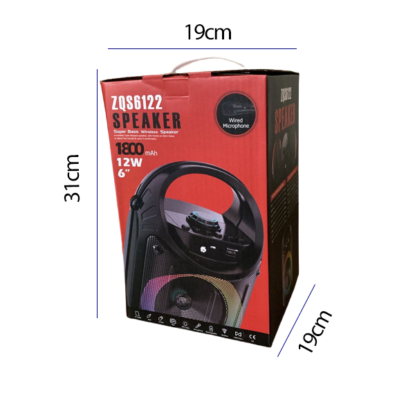 اسپیکر پرتابل ZQS 6122 با 12وات و 5 ولت توان قابلیت پخش موسیقی با کیفیت بالا را دارد و با وزن 1.27 کیلوگرم به راحتی قابل حمل می باشد.