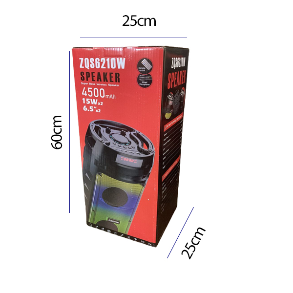 اسپیکر پرتابل ZQS 6210 با 15وات *2 و 5 ولت توان قابلیت پخش موسیقی با کیفیت بالا را دارد و با وزن 4.0 کیلوگرم به راحتی قابل حمل می باشد.