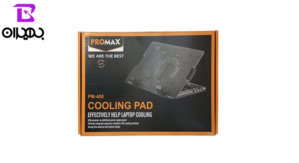پایه خنک کننده لپ تاپ پرومکس مدل PM-400 یک کول پد از جنس پلاستیک و آلومینیوم و مناسب لپ تاپ های تا 17 اینچ می باشد. شما می توانید ارتفاع آن را به اندازه دلخواه تغییر داده و یا در چهار جهت مختلف زاویه آن را تنظیم نمایید. سیستم خنک کنندگی این کول پد توسط یک فن 160 میلی متری انجام می شود
