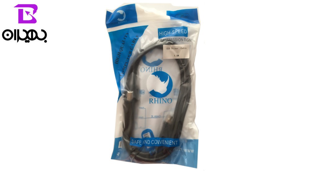 کابل USB پرینتر راینو دارای ضخامت بیشتری داشته و به همین دلیل دوام و کیفیت بالاتری دارد. طول این کابل 1.5 متر بوده و توسط یک پورت USB به کامپیوتر یا لپ تاپ متصل می شود.
