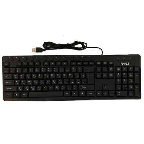 کیبورد راینو مدل KR-200 یک کیبورد با اتصال سیمی است که از طریق پورت USB به کامپیوتر شما متصل می شود. این کیبورد دارای 117 عدد کلید با حروف فارسی است و شما می توانید برای تایپ از آن استفاده نمایید.
