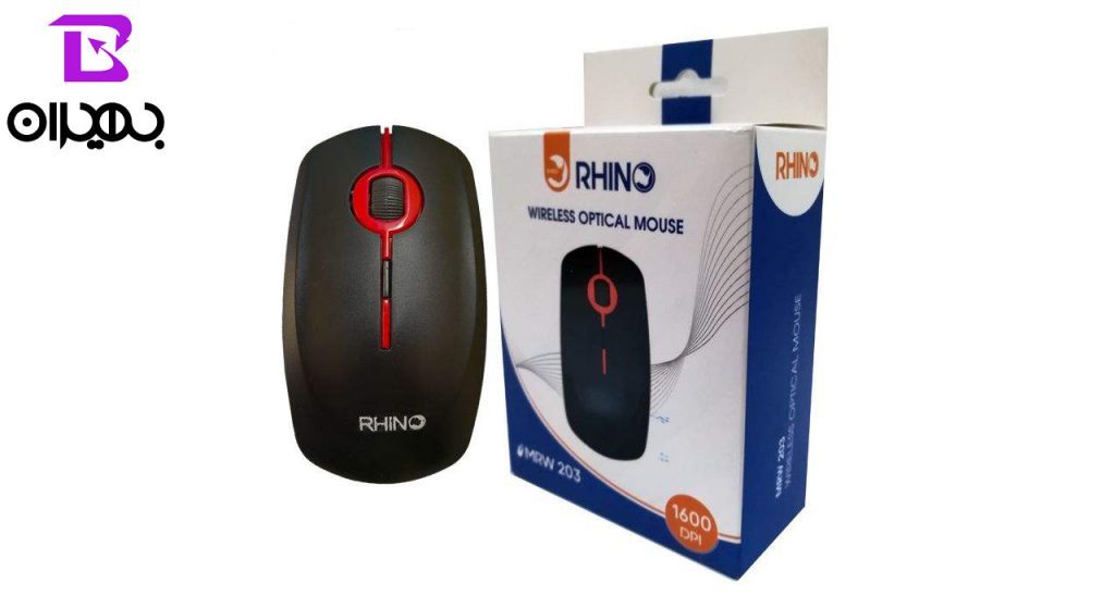 ماوس بی سیم راینو مدل MRW-203 به صورت بی سیم و از طریق دانگل USB به کامپیوتر متصل شده، دارای 4 کلید و دقت 1600dpi می باشد. حسگر این ماوس اپتیکال بوده و انرژی لازم را از یک باتری قلمی دریافت می کند.