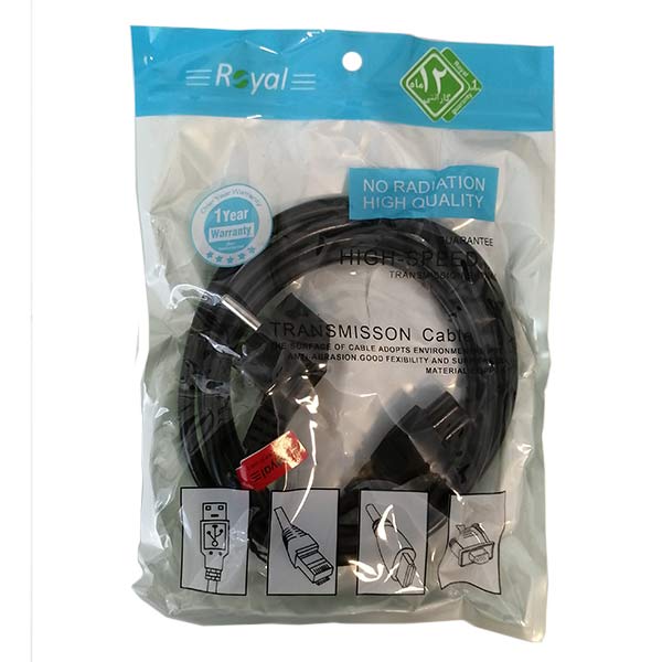 کابل برق لپ تاپ رویال مدل 087 طول 1.7 متر از یک سمت مجهز به پورت سه پین و از یک سمت مجهز به دوشاخه سازگار با پریز برق ایران است. شما می توانید از این کابل برای انتقال برق به لپ تاپ و سایر دستگاه هایی که پورت سه پین دارند، استفاده کنید.