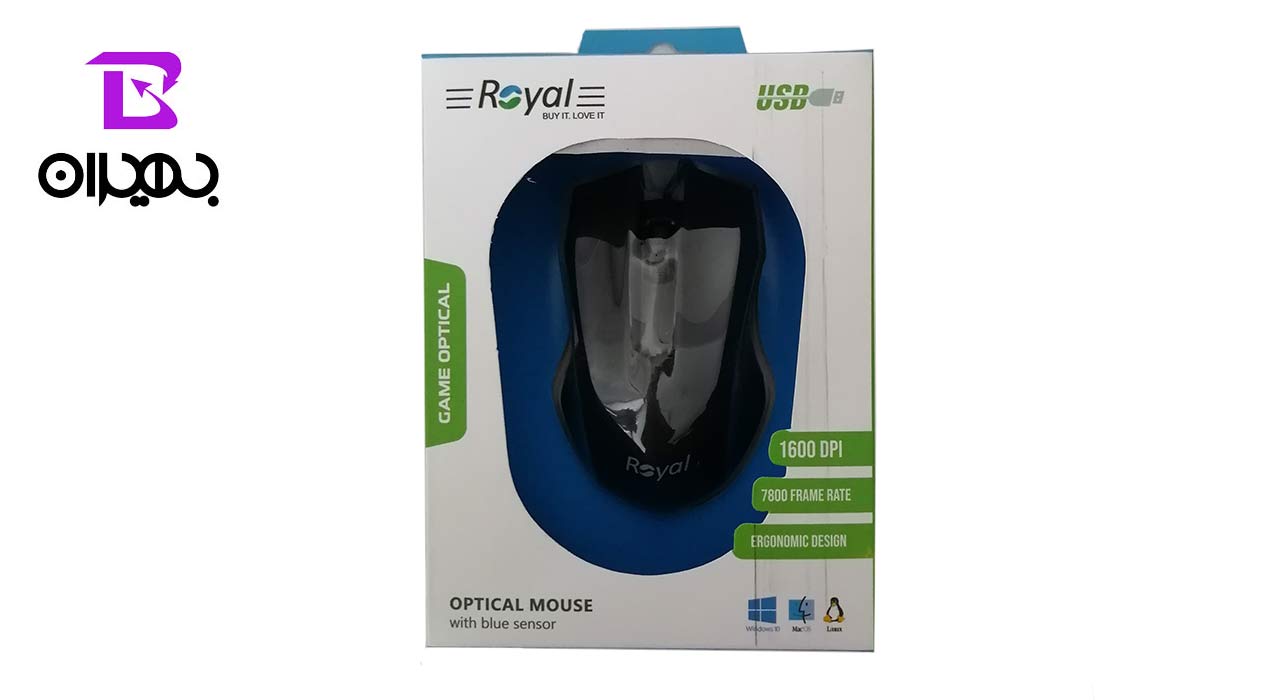 ماوس رویال مدل M-754 یک ماوس با سیم است که از طریق پورت USB به کامپیوتر و لپ تاپ متصل می شود. این ماوس با سه عدد کلید طراحی شده و دارای حسگر اپتیکال و دقت 1600dpi می باشد.