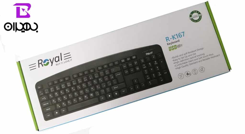 کیبورد رویال مدل R-K167 از طریق پورت USB و به صورت سیمی به کامپیوتر شما متصل می شود. این کیبورد دارای 104 عدد کلید بوده و برای استفاده در منزل و محل کار بسیار مناسب و استاندارد است.