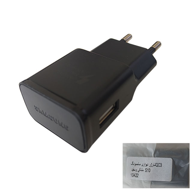 شارژر دیواری سامسونگ مدل S10-QC3-10422 دارای دو شاخه متناسب با پریز های ایران و یک پورت USB است. کیفیت ساخت این محصول بسیار بالا بوده و از قابلیت شارژ سریع پشتیبانی می کند.