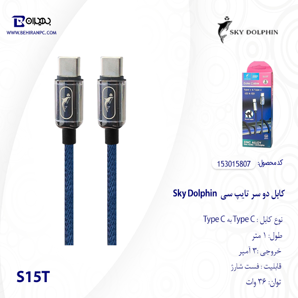کابل دو سر تایپ سی Sky Dolphin 36W مدل S15T طول 1 متر sky-dolphin-s15t-type-c-to-type-c-cable