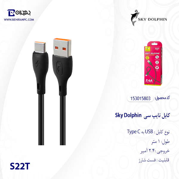 کابل تایپ سی Sky Dolphin مدل S22T طول 1 متر sky-dolphin-s22t-type-c-cable