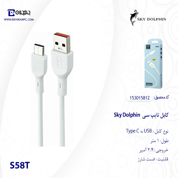 کابل تایپ سی Sky Dolphin مدل S58T طول 1 متر عدد