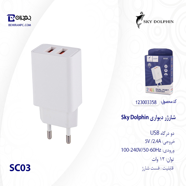 شارژر دیواری Sky Dolphin 12W مدل SC03 عدد