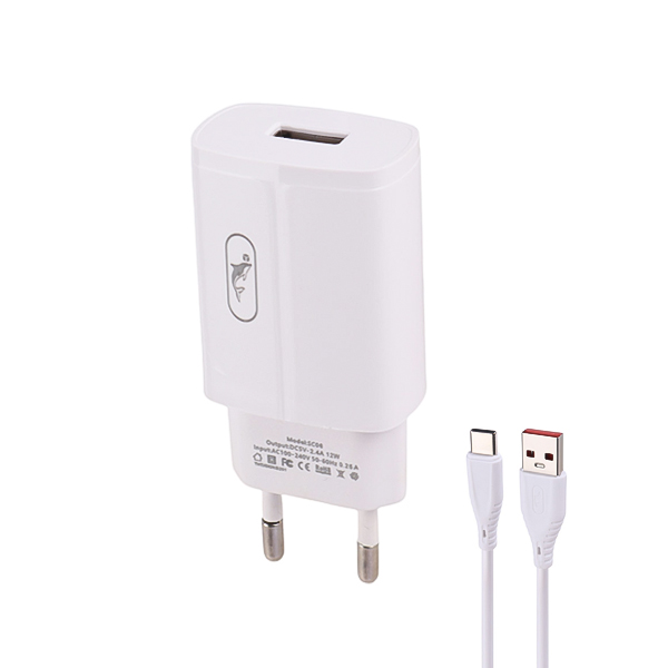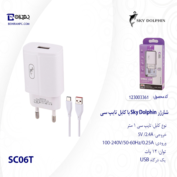 شارژر دیواری Sky Dolphin 12W مدل SC06T + کابل تایپ سی