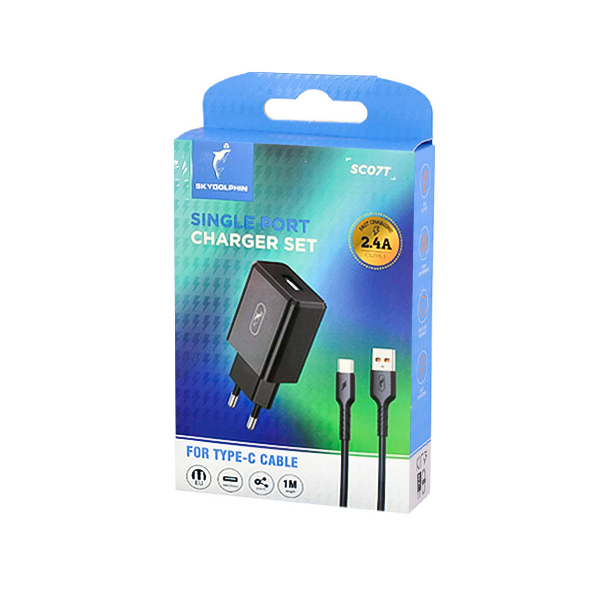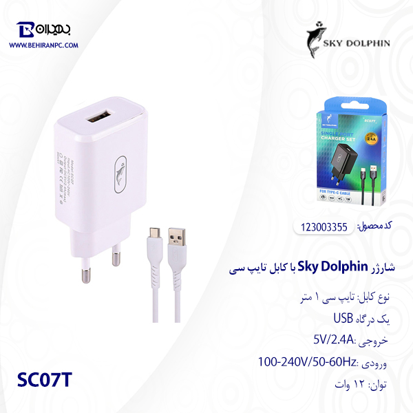 شارژر دیواری Sky Dolphin 12W مدل SC07T + کابل تایپ سی