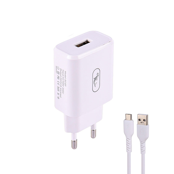 شارژر دیواری Sky Dolphin 12W مدل SC07T + کابل تایپ سی عدد