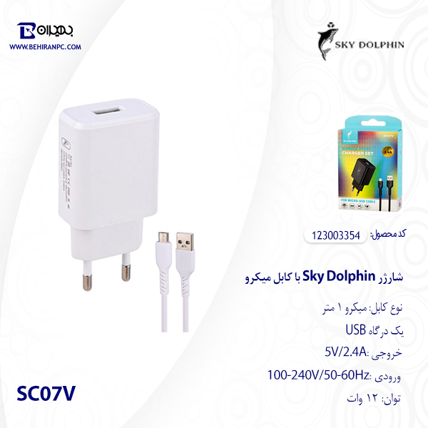 شارژر دیواری Sky Dolphin 12W مدل SC07V + کابل MicroUSB