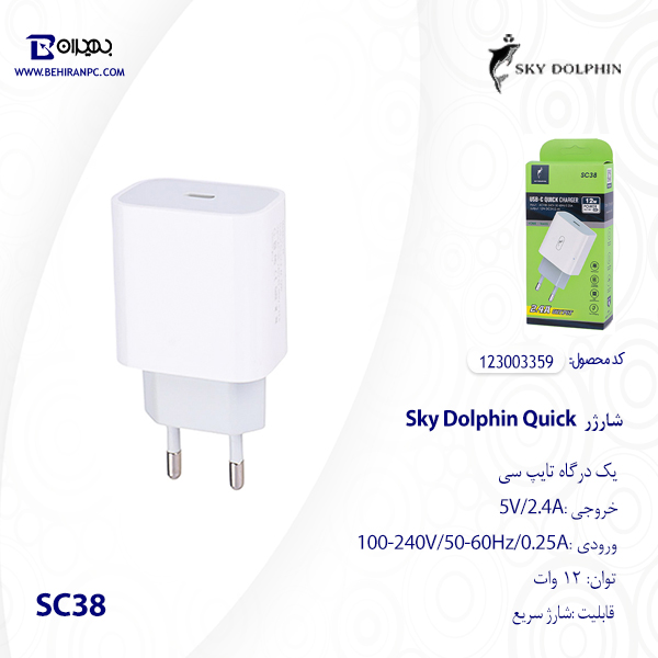شارژر دیواری Sky Dolphin Quick 12W مدل SC38 عدد
