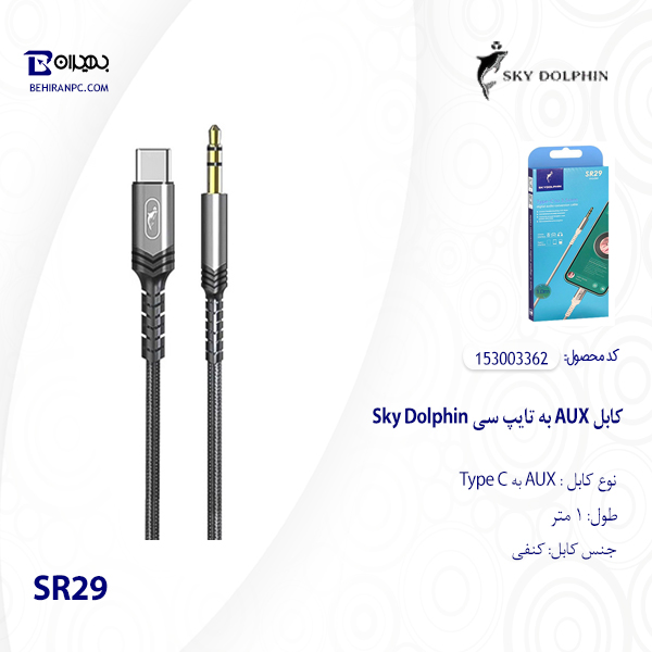 کابل تبدیل Type-C به Sky Dolphin AUX مدل SR29 طول 1 متر sky-dolphin-sr29-type-c-to-3-5-mm-cable