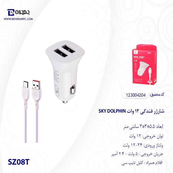 شارژر فندکی دو پورت Sky Dolphin مدل SZ08T به همراه کابل Type-C عدد