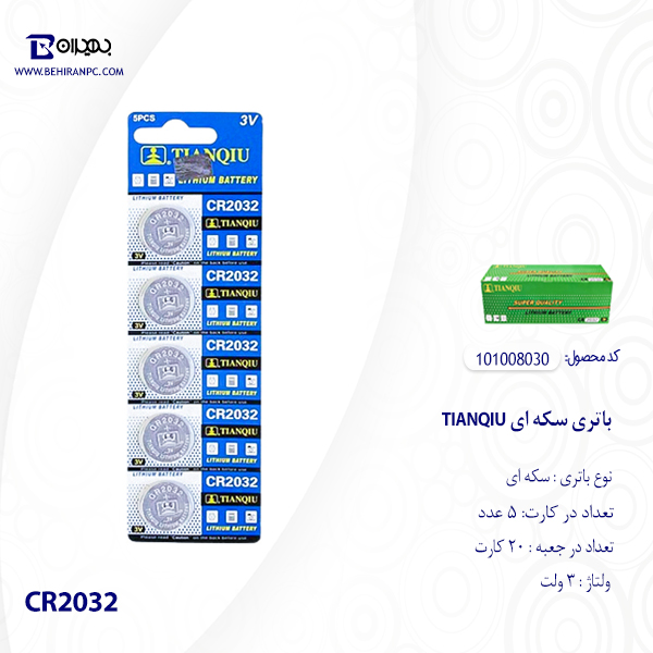 باتری سکه ای TIANQIU یکی از انواع باتریهای با کیفیت و کاربردی است. باتری سکه ای TIANQIU CR2032 با ولتاژ 3 ولت در بسته بندی 5 عددی در بازار عرضه می شود. همچنین از این باتری سکه ای TIANQIU CR2032 شما میتوانید برای ریموت کنترل، دزدگیر ماشین، باتری سکه ای ترازو، ساعت مچی، اسباب بازی و… استفاده کنید.
