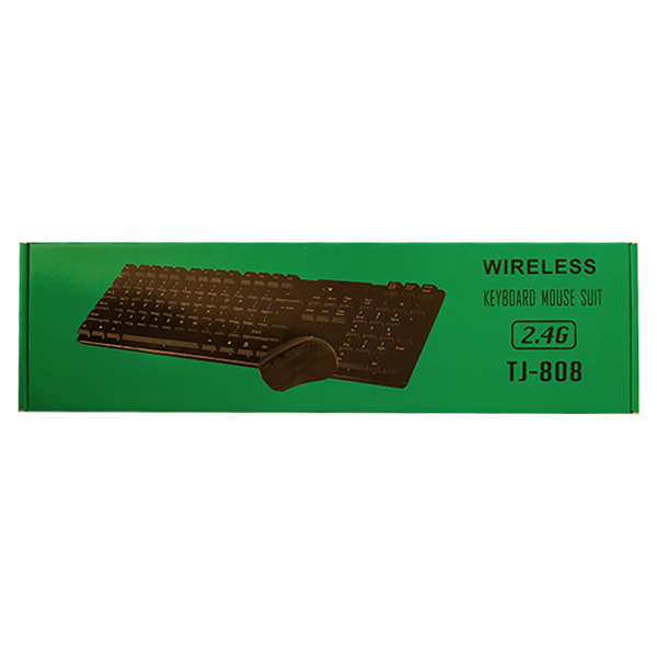 ست کیبورد و ماوس بی سیم مدل TJ-808 شامل یک کیبورد با 104 عدد کلید و یک ماوس با 3 عدد کلید است که می توانید آن ها را به صورت بی سیم و از طریق یک دانگل USB به کامپیوتر، لپ تاپ و… متصل کنید.