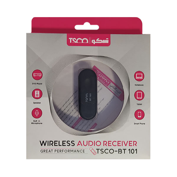 از دانگل بلوتوث صدا تسکو مدل BT-101 می توانید برای انتقال صدا به دستگاه هایی که فاقد بلوتوث می باشد استفاده نمایید. برد این محصول 10 متر بوده و می توانید دستگاه خود را حداکثر تا این فاصله از پخش کننده دور کنید. به همراه این دستگاه کابل صدایی وجود دارد که با استفاده از آن می توانید به صورت سیمی نیز ارتباط بین دستگاه و پخش کننده را برقرار سازید.
