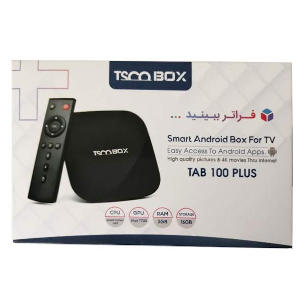 اندروید باکس تسکو مدل Tab 100 Plus امکان تبدیل تلویزیون های عادی به هوشمند را فراهم می کند. این محصول مجهز به پردازنده چهار هسته ای Cortex-A53 و پردازنده گرافیکی Mali-T720MP2 است و با اندروید ورژن 9.0 یک تلویزیون هوشمند در اختیار شما قرار می دهد.