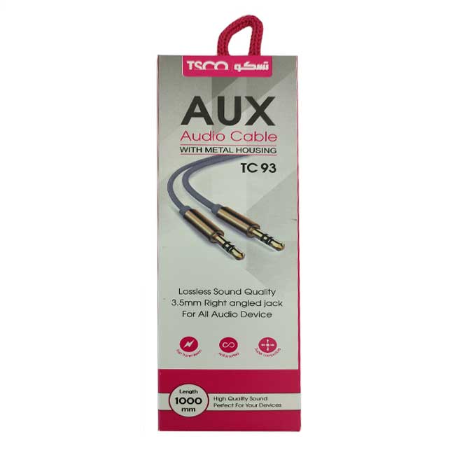 کابل AUX تسکو مدل TC 93 طول 1 متر برای انتقال صدا از دستگاه های پخش به اسپیکر استفاده می شود. این کابل از جنس PVC با کانکتورهایی بسیار با دوام و با کیفیت ساخته شده است. برای انتقال صدا از موبایل به اسپیکر، هدست، پخش ماشین و… می توانید از این کابل استفاده کنید.